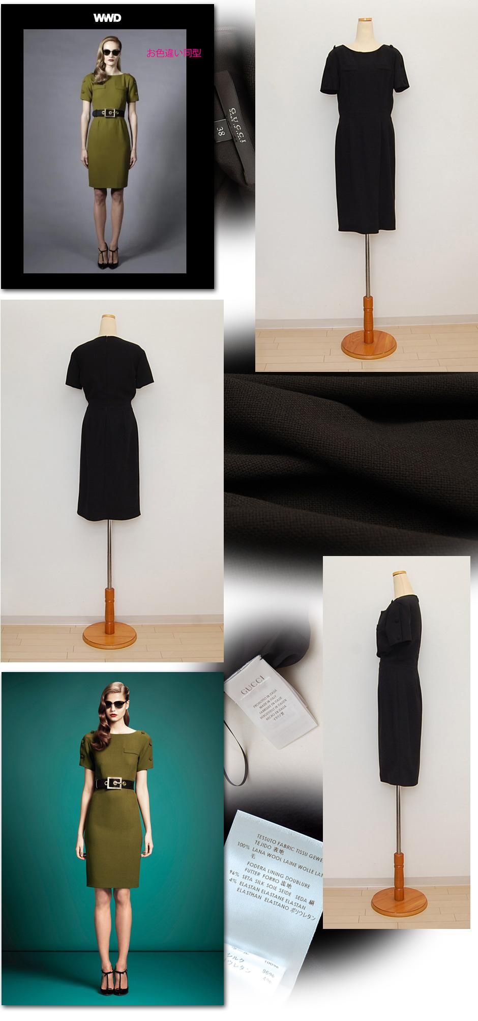 Gucciのrunwayワンピースです。ペラペラじゃなくとてもしっかりとした素材感、膝がすれすれ隠れるレングスです。クリーニングによる裏地のシワ等ございますが、その他ダメージも見られないとても綺麗なお品。ウエストの絞り&控えめなボートネックがエレガントさ抜群の一枚。
