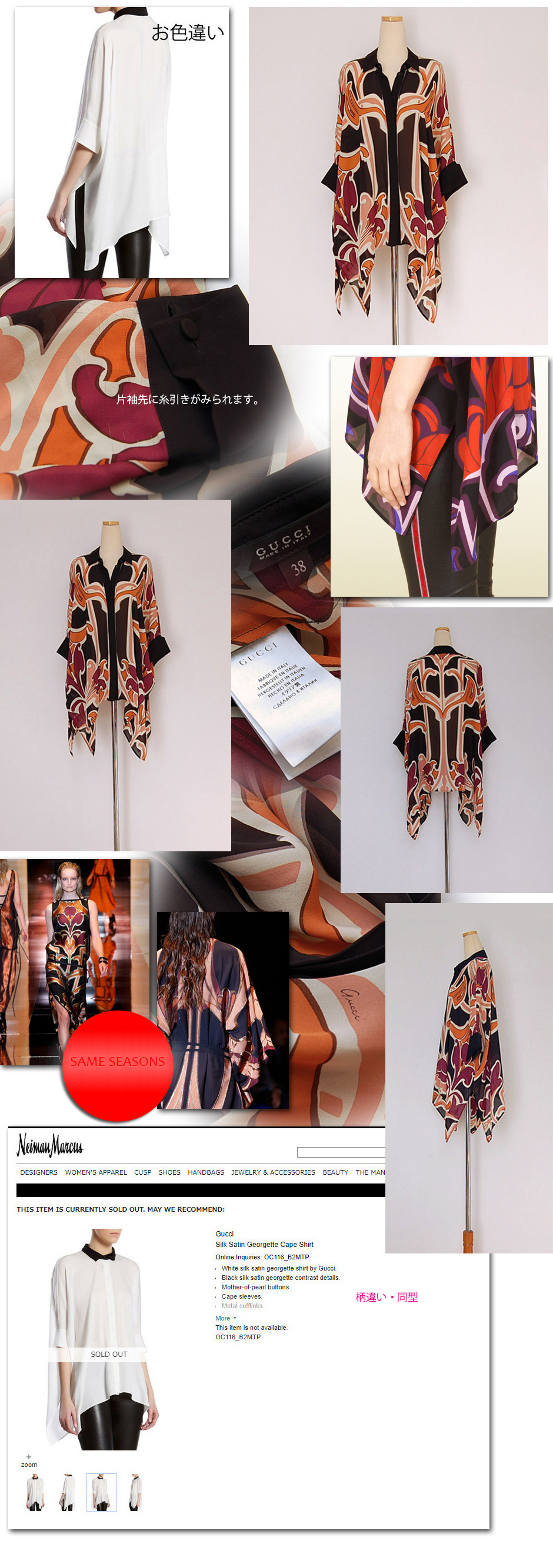 - グッチ カフタン風 シャツブラウス シルク100 アシンメトリーヘム