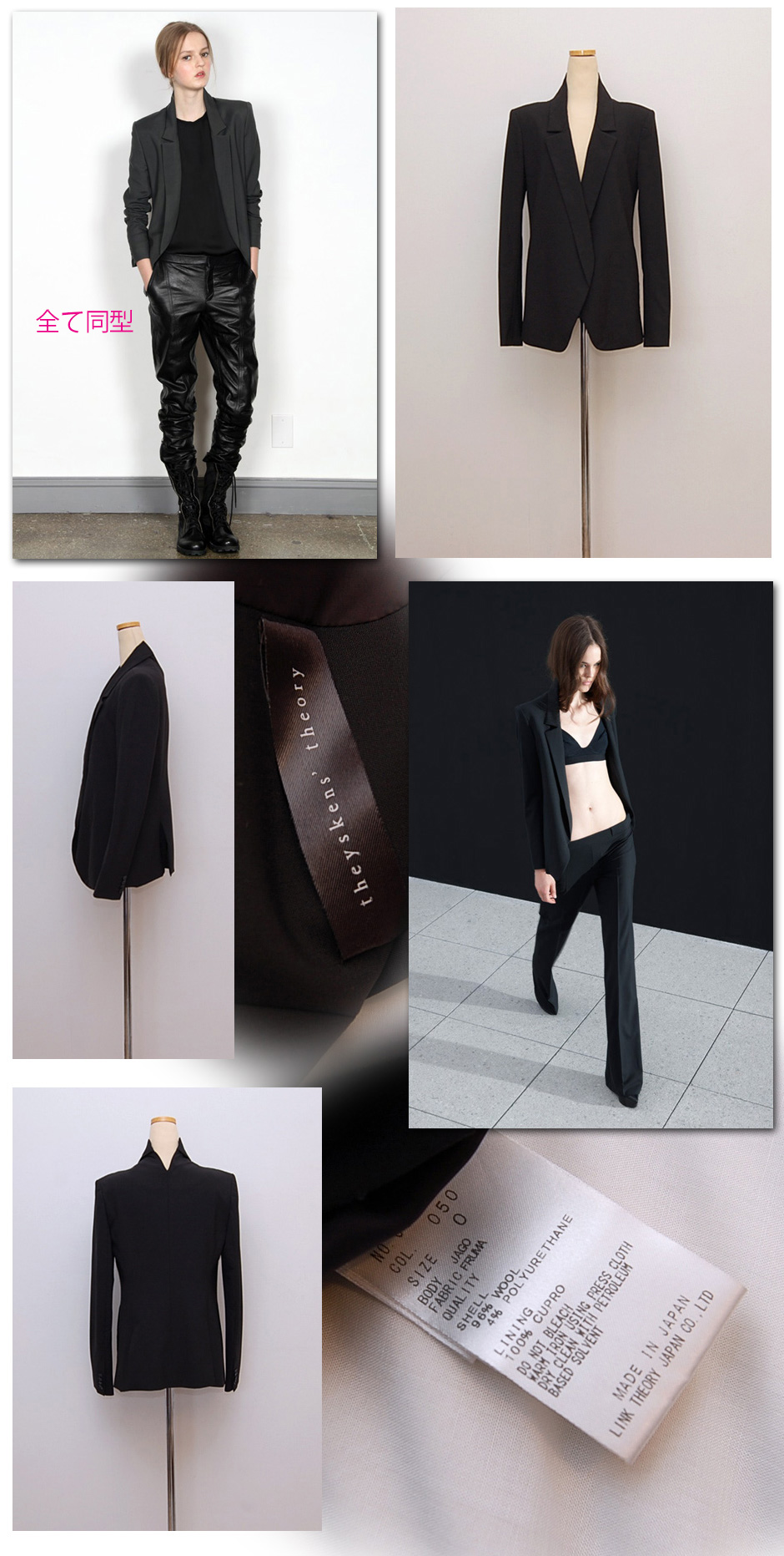 セオリーの最高級ラインのアイテム、ヒップ半分程度のレングス、タイトめにみえますがインナーに薄手のニット等は着用できるゆとりあり。非常にかっこいいラインでどなたでもクールに着ていただけます。変形デザインですが奇抜なラインではなく綺麗なジャケット、着用するととてもかっこいいです。使用済み感と軽いシワが残りますがとても綺麗なお品。