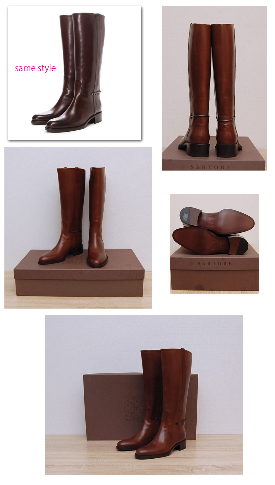 通常のニー直下レングス、すとんとまっすぐデザインされた筒ラインで脚をまっすぐ綺麗にみせてくれます。トウは少し細めのタイプ、上質なカーフと計算された美しいシルエットでコーデに高級感をもたせてくれます。ジップなしですがするっと簡単に着用できます。こちらセール品につき軽い傷と一部にシワ感がございます、そのため格安となっております。
