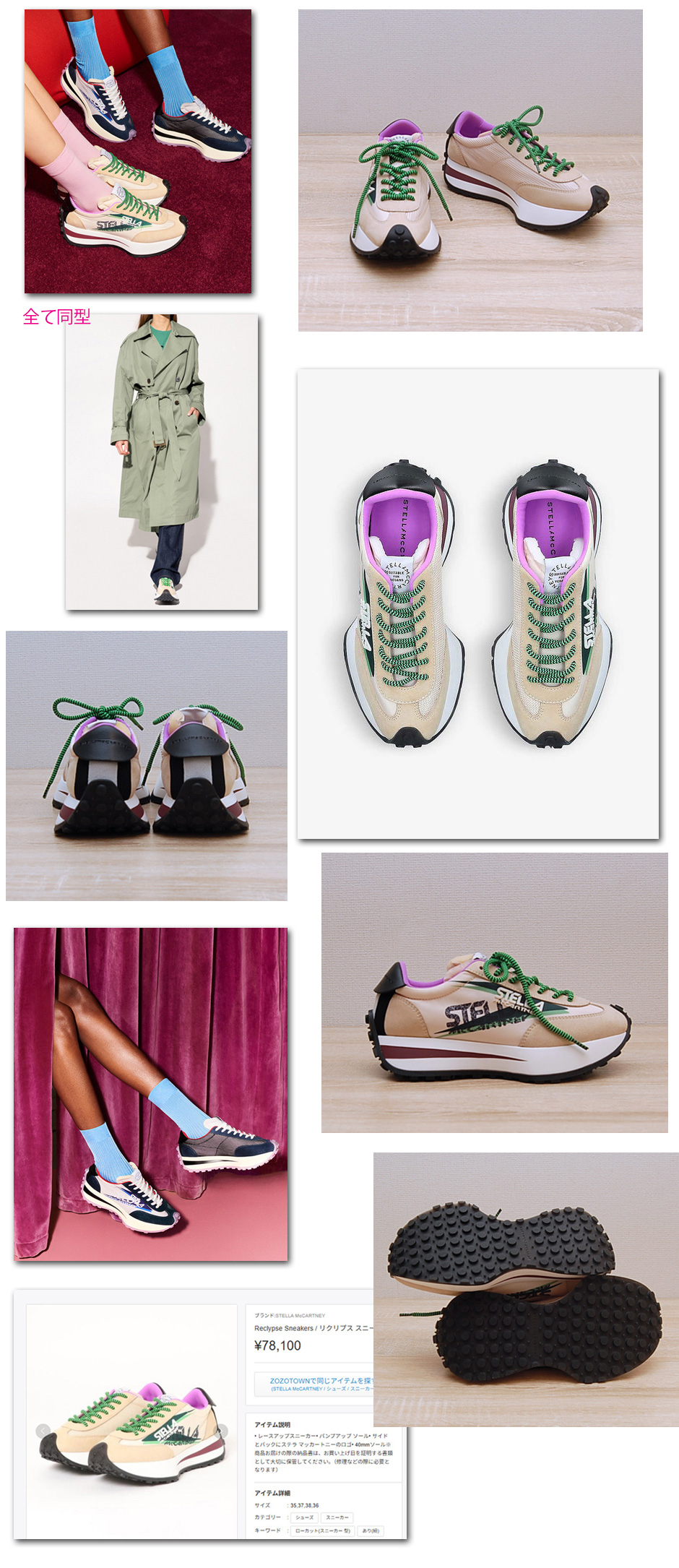 柔らかく履き心地もよいスニーカー、パンツスタイルはもちろんワンピやスカートスタイルと合わせても可愛くコーデいただけます。ヒールがありますのでスタイルも良く魅せてくれるスニーカー。定価:78100円 Heel:4.5cn