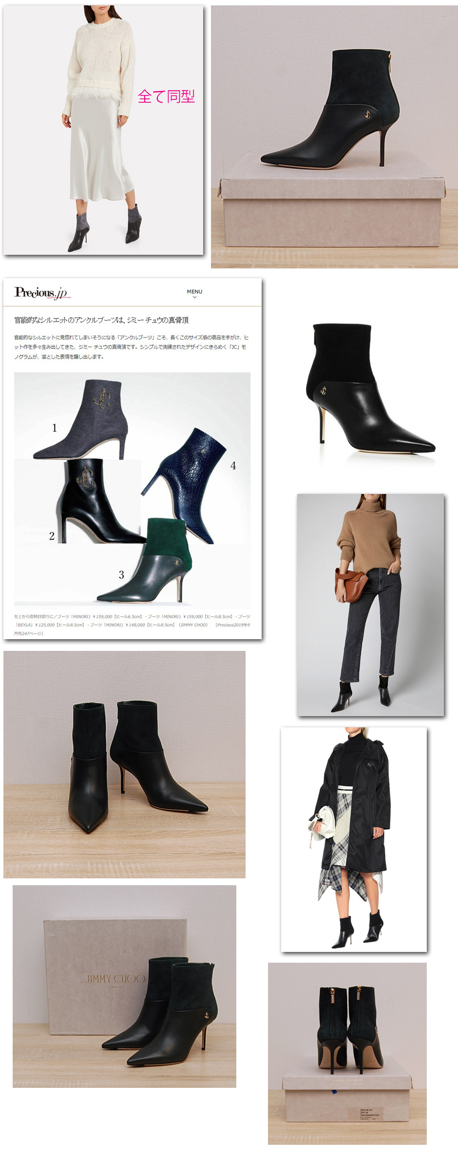 綺麗なシルエットのアンクルブーツ、パンツスタイルにもスカートスタイルにもマッチ、コーデのイメージはモデルさん画像をご確認くださいませ。歩きやすく美しいシューズです。定価:125000円 Heel:8.5cm