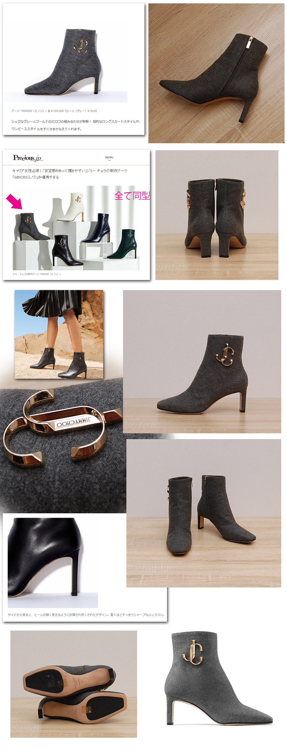 大きなロゴが特徴的な一足。内側ジップで着脱、あたたかみのある素材で女性らしい柔らかい印象のあるブーツです。スカートやワンピにピッタリのフォルム、特にモノトーンでまとめたコーデに合わせるとおしゃれに履いていただけます。こちらセール品につき型崩れによるシワが若干ですがみられます。定価:159000円 Heel:6.5cm