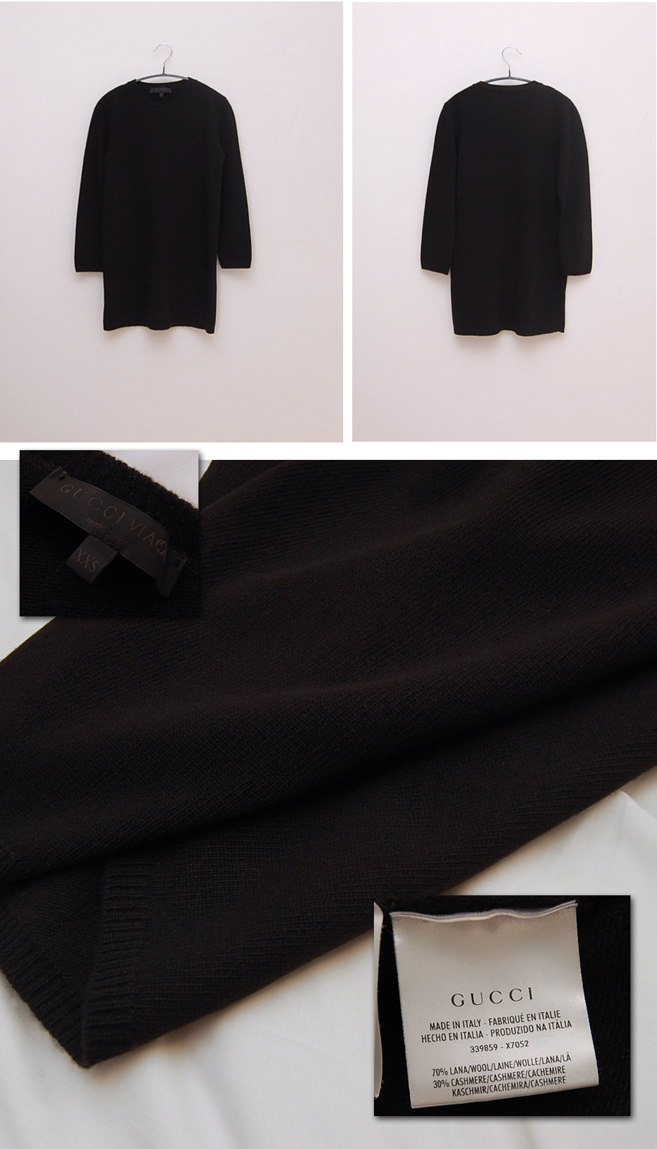 XXSですがM程度、オーバーサイズほどではありませんが、ボディーラインは拾わないほどよいフォルム、レングスはヒップ中央程度です。お袖は9分程度、ラクチンで着回し力抜群のニット。インナー側に毛羽立ちあり、外側は毛羽立ちはほとんど見られませんがほく軽い糸くず付着がございます。