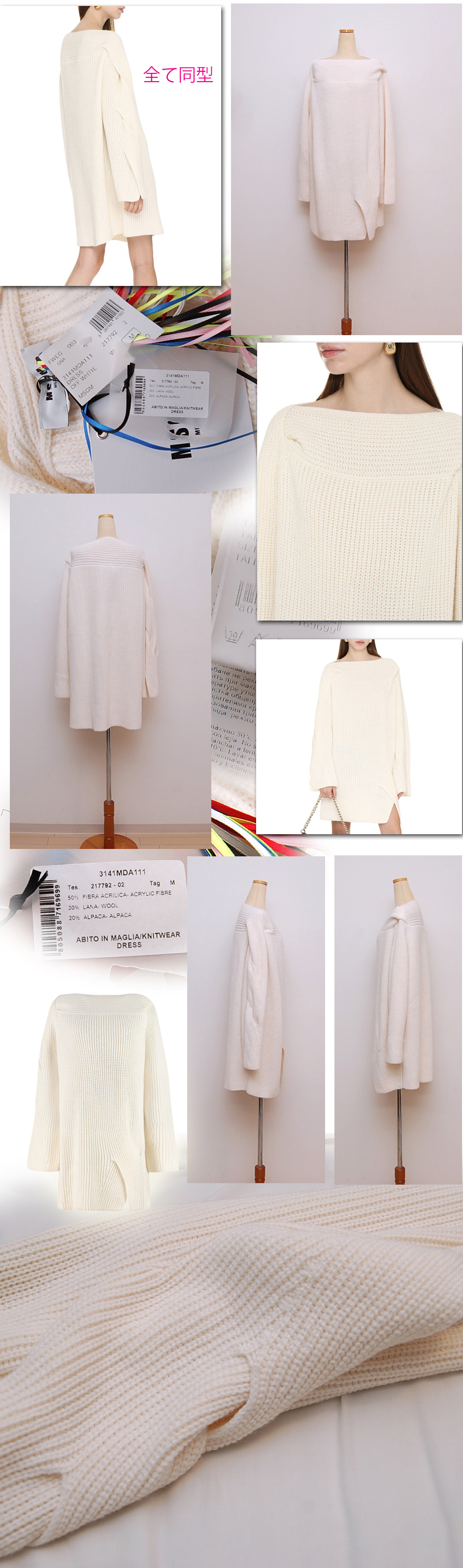 MSGM アイボリー ボートネック オーバーサイズ チャンキーニットワンピ