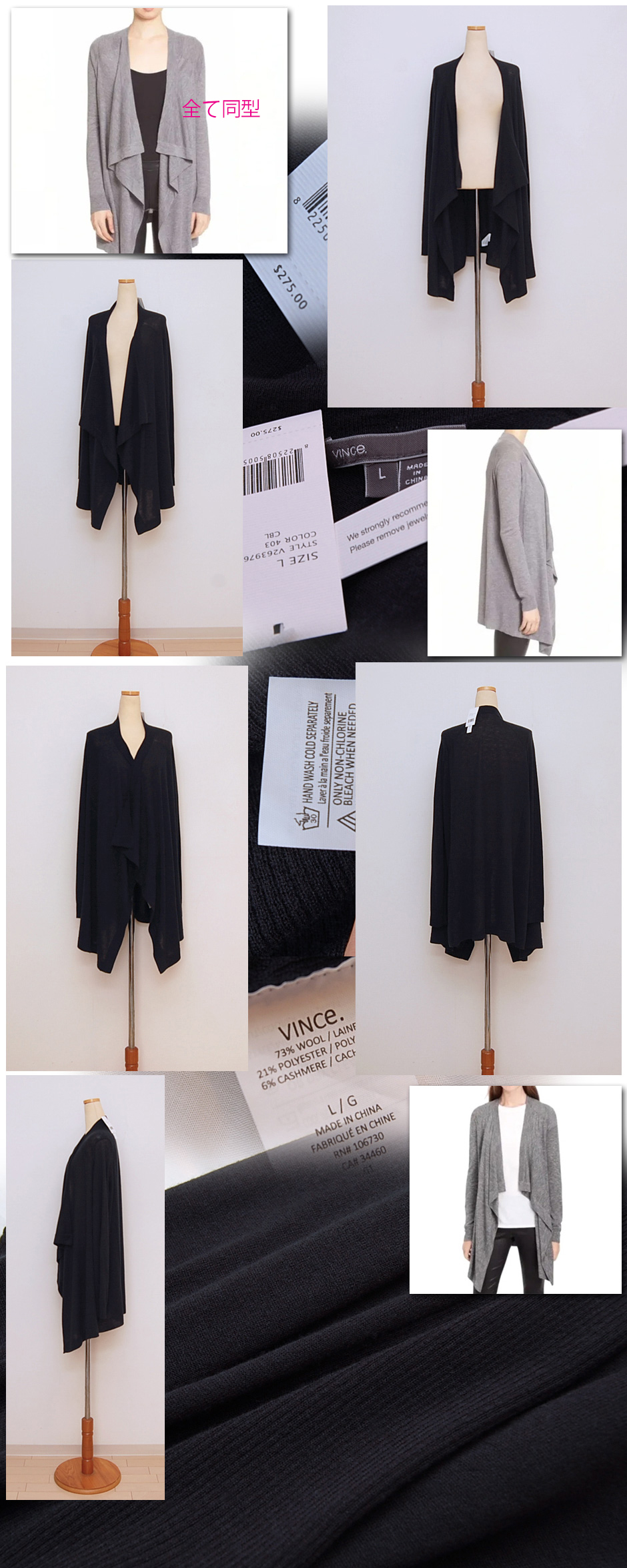 最も長い箇所で膝にかかる程度のレングス、柔らかく肌触りの良い質感のカーデです。薄手の素材でさらっと羽織るように色々と使える一枚。ご自宅手洗いOK こちらセール品につきわずかに糸くず付着残がみられます。