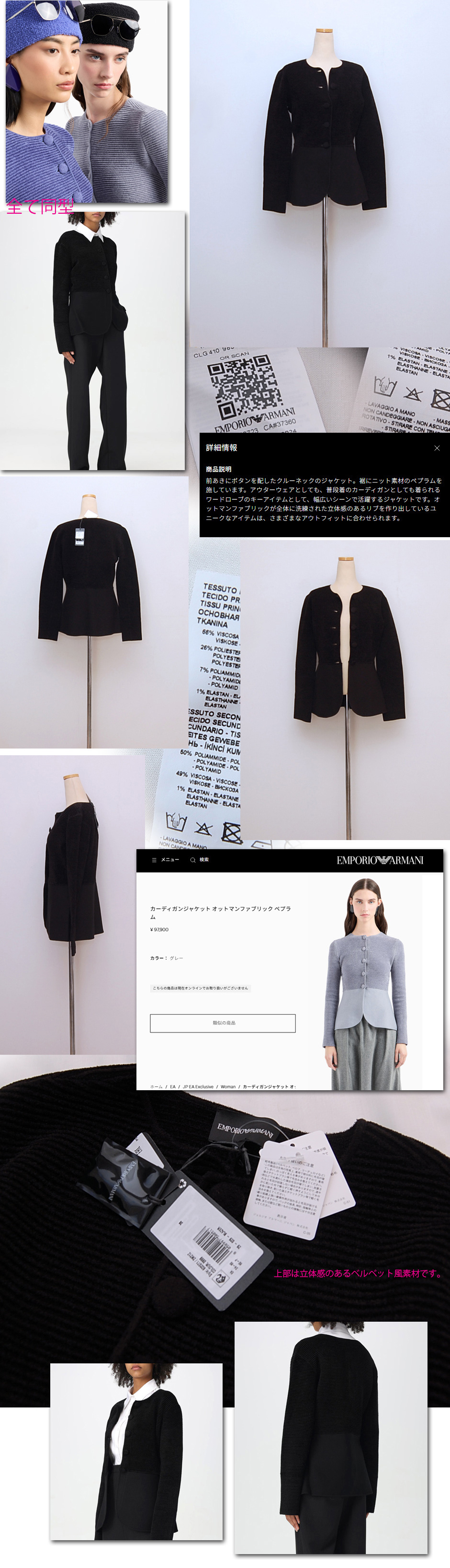 ストレッチ性が強くあり、かなり動きやすい快適なジャケット、フロントを全部しめトップスとしても着用できます。ヒップ上部までのレングス、軽くウエストがシェイプされ綺麗なフォルム、どなたでもエレガントに着ていただけるかと思います。ご自宅手洗いOK 定価:97900円
