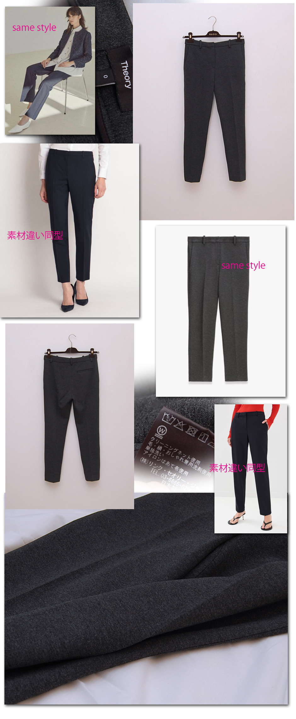 ストレッチ性が強くあり、かなり動きやすく快適なパンツ。化学繊維のミックス素材ですが、見た目は厚手のウールっぽい印象の素材感です。ハイウエスト型、暖かく防寒性もあり秋冬に使える一枚。ご自宅手洗いOK 外側は使用感を感じない綺麗なお品。内側素材表記印字に薄れあり。