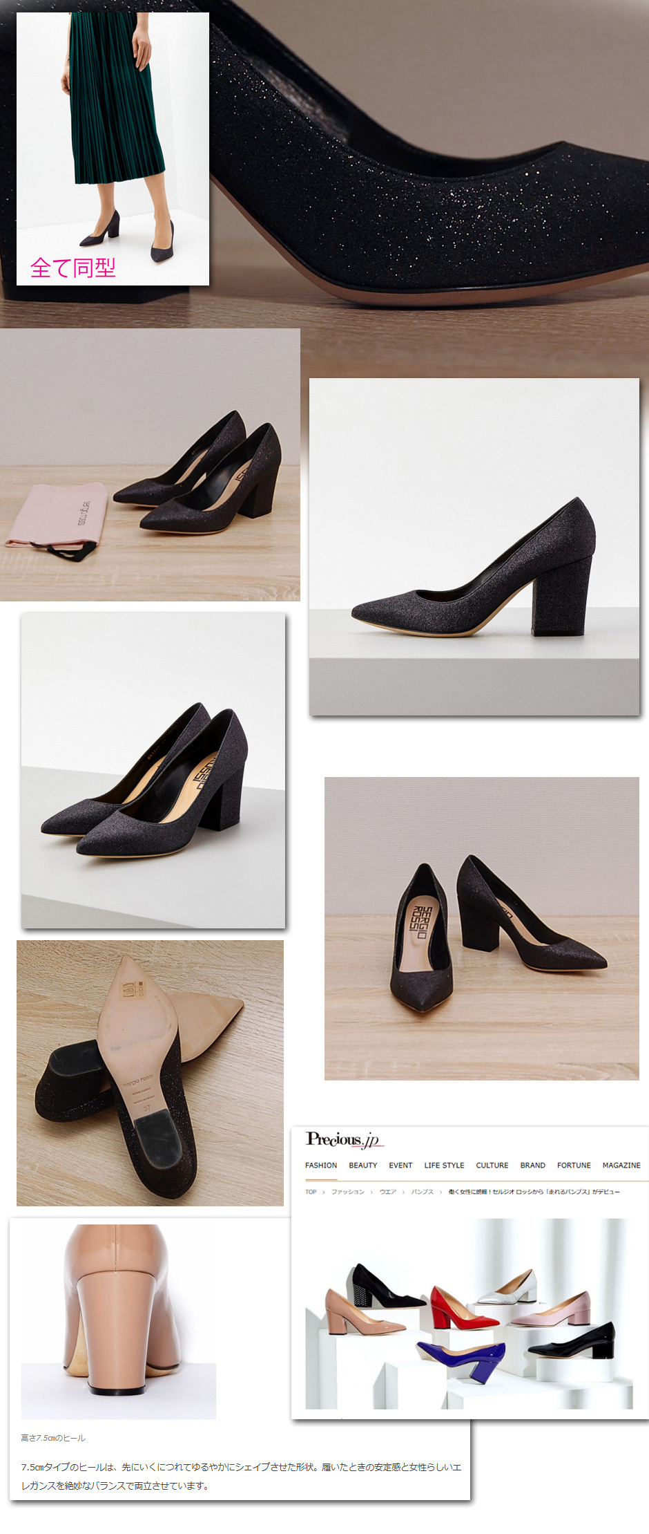 定番人気のパンプス、走れるパンプスと称される安定感があり歩きやすい一足。ポインテッドトウと細身のフォルムでフォルムもとても美しいです。Heel:7.5cm